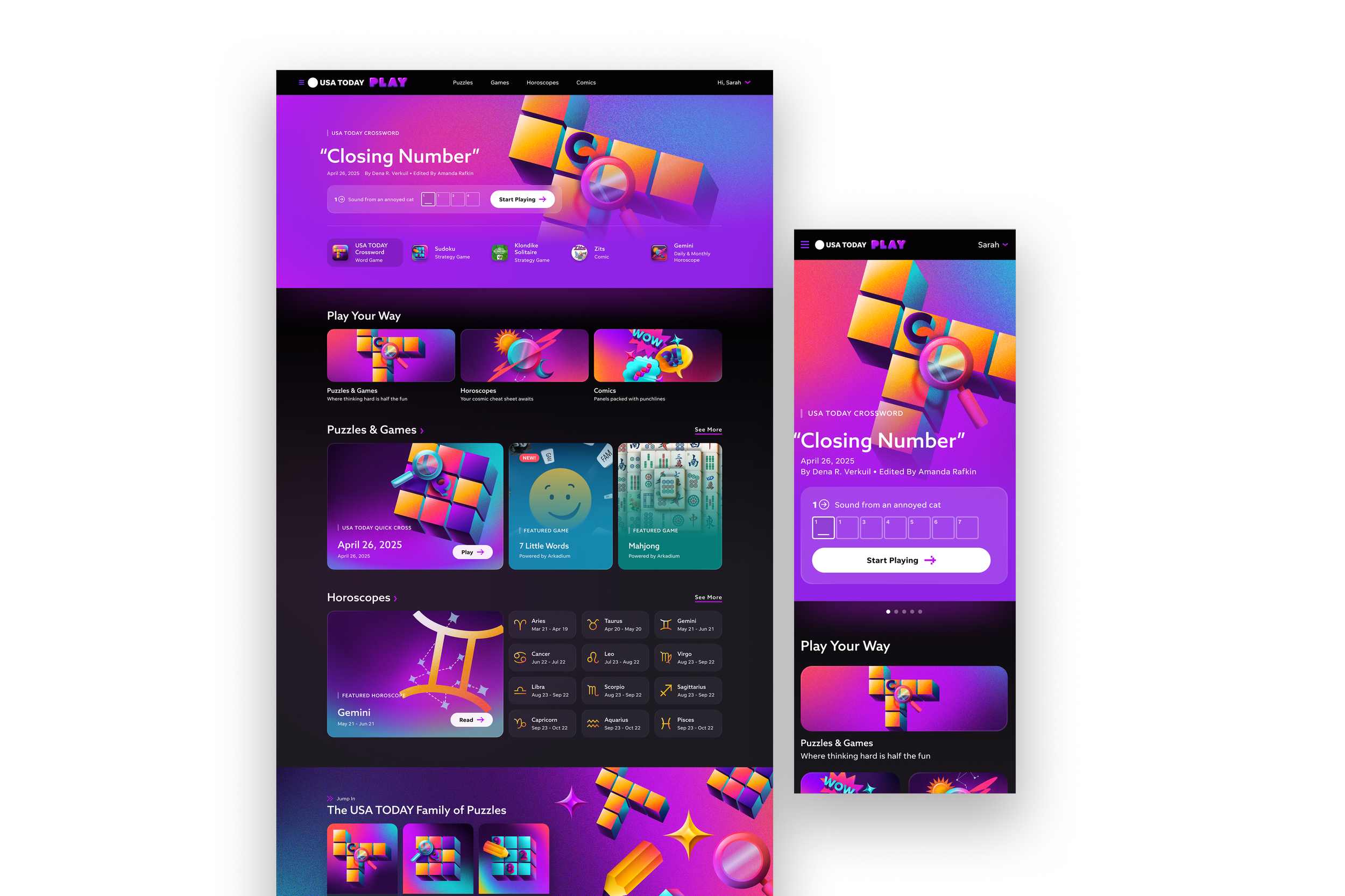 A one-stop shop for all our puzzles, games, comics, and horoscopes pages in a unified and updated brand.
